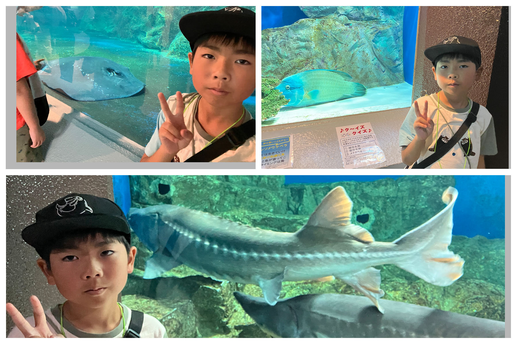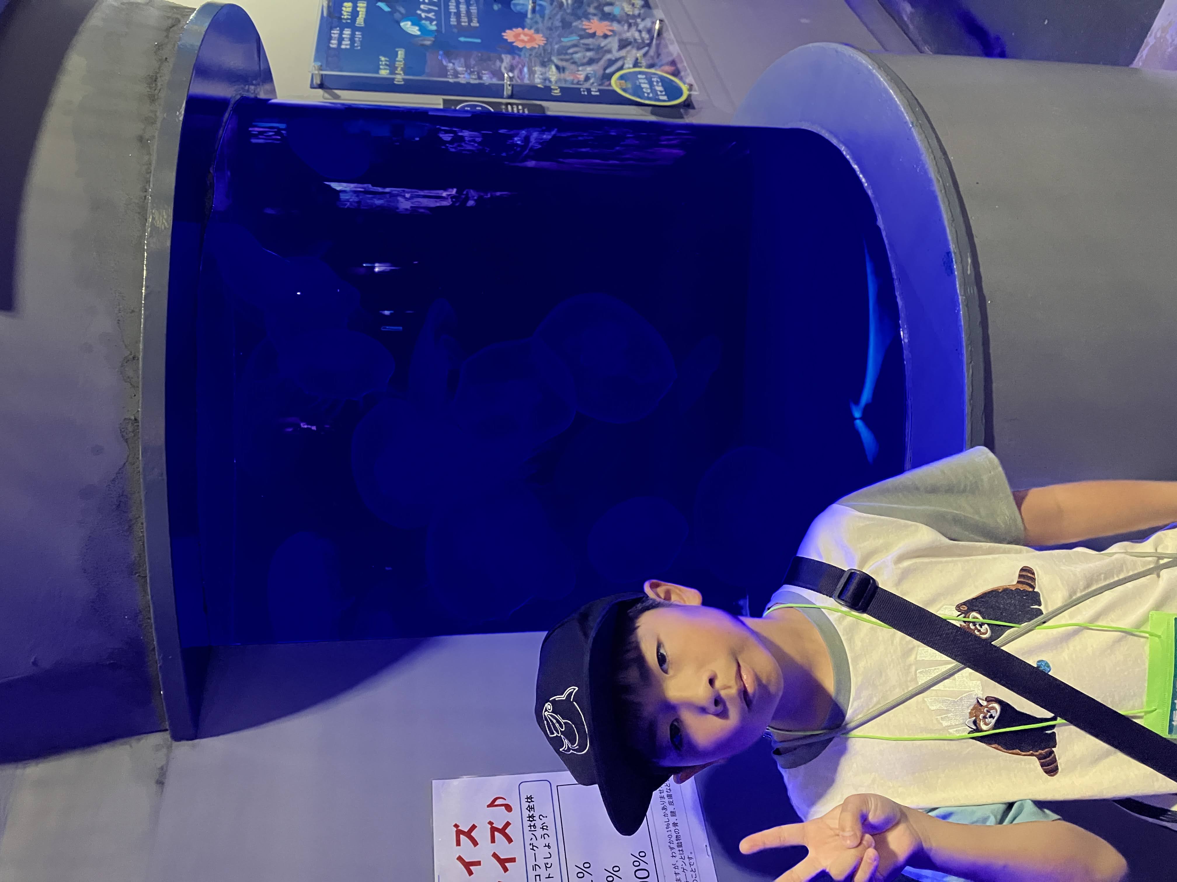直ぐ上の青い水槽にはクラゲがたくさんいるよ
