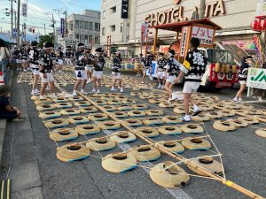 上は竿燈まつりの準備ちう