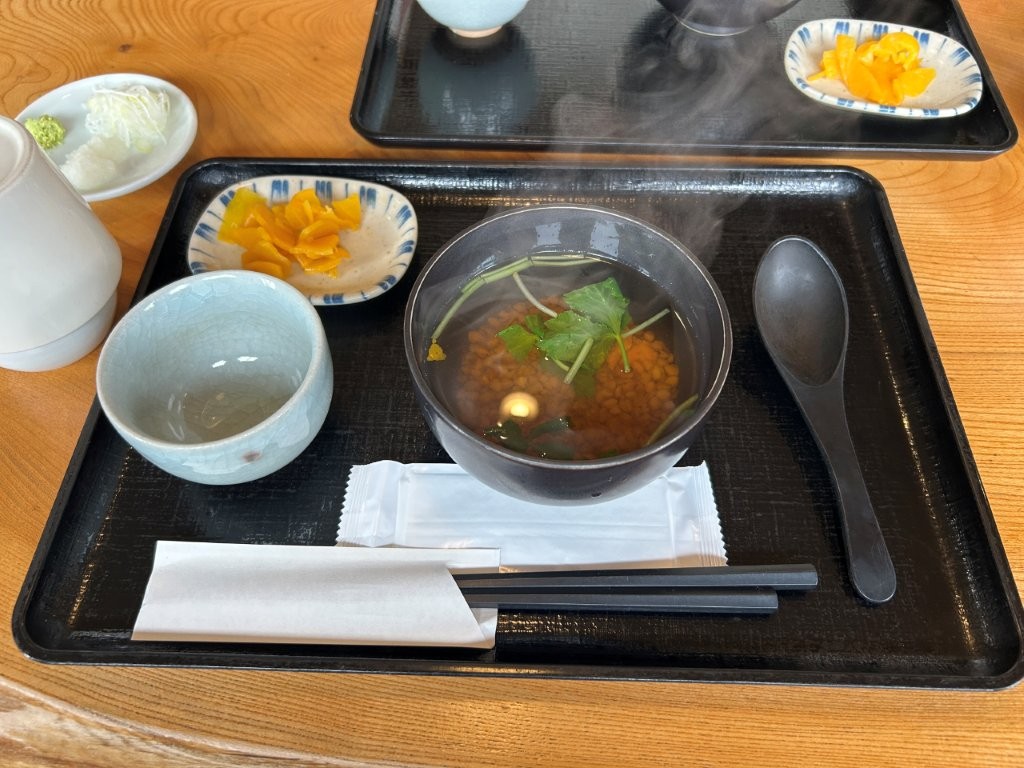 蕎麦の実のお吸い物が出る