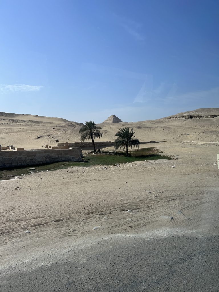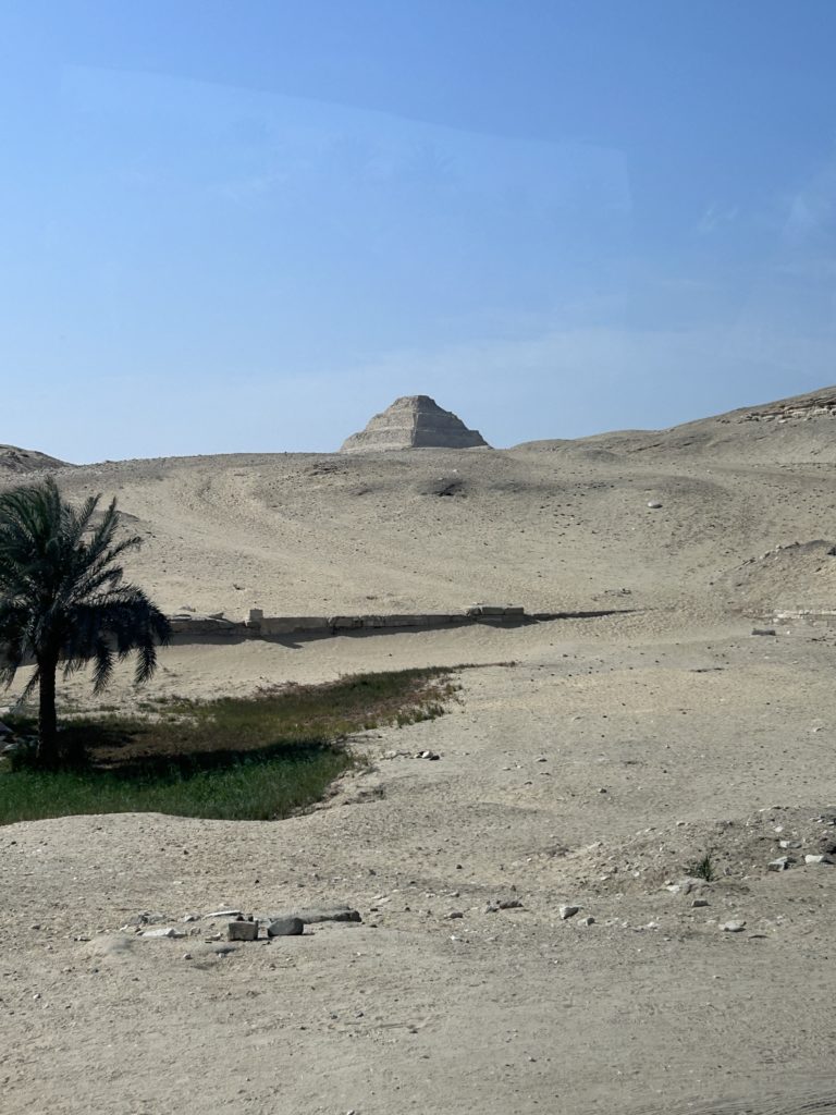 バスの窓からしだいに近づく階段ピラミッドが見えます。興奮します😐