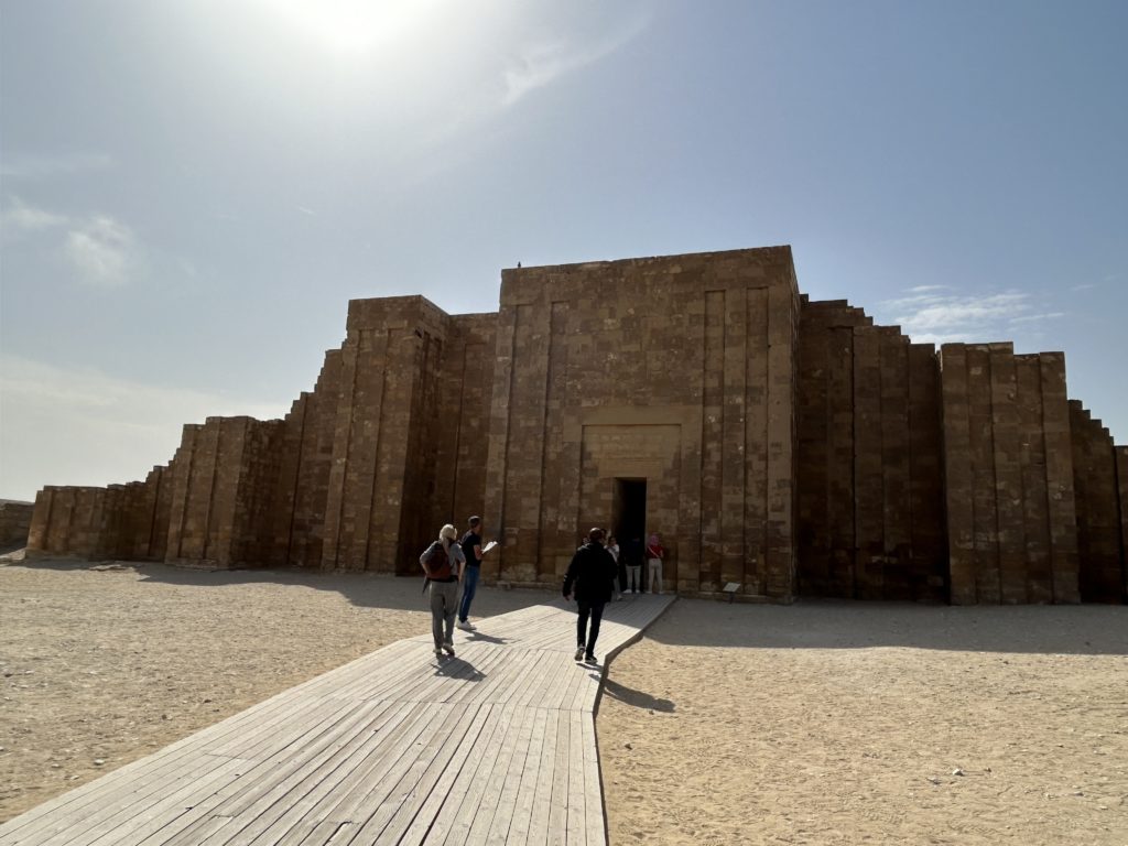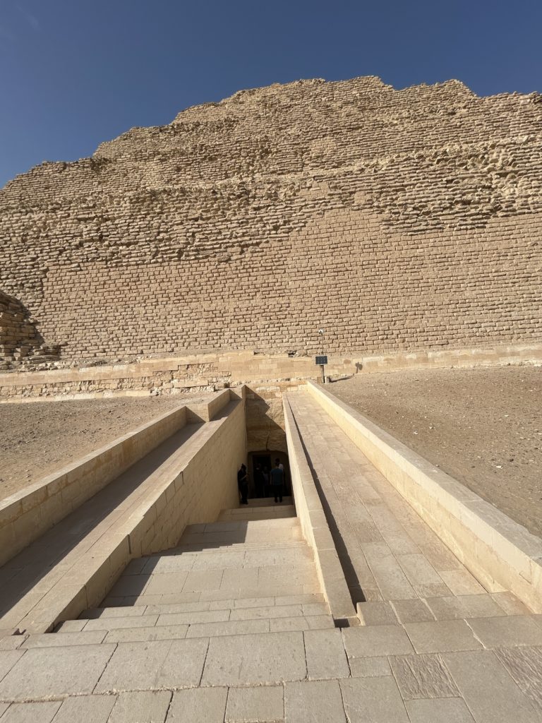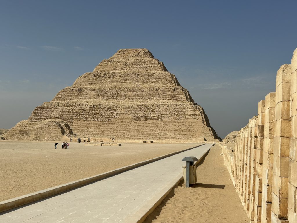この頃はまだ真正ピラミッドはなく、当初は一番下の段(マスタバと呼ばれている平べったい台形のお墓)だけだったハズ、なのに更にその上に段を重ね重ねて最終的に写真のような形になったそうです。