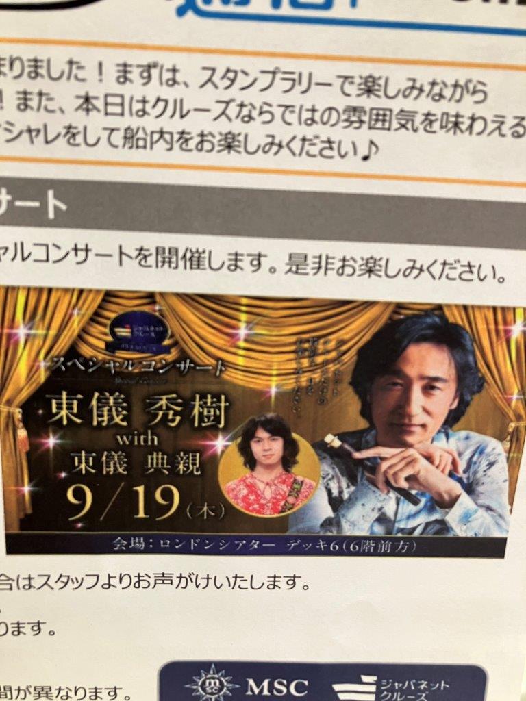 終日クルーズの暇つぶしでしょうか、東儀親子のスペシャルコンサートが